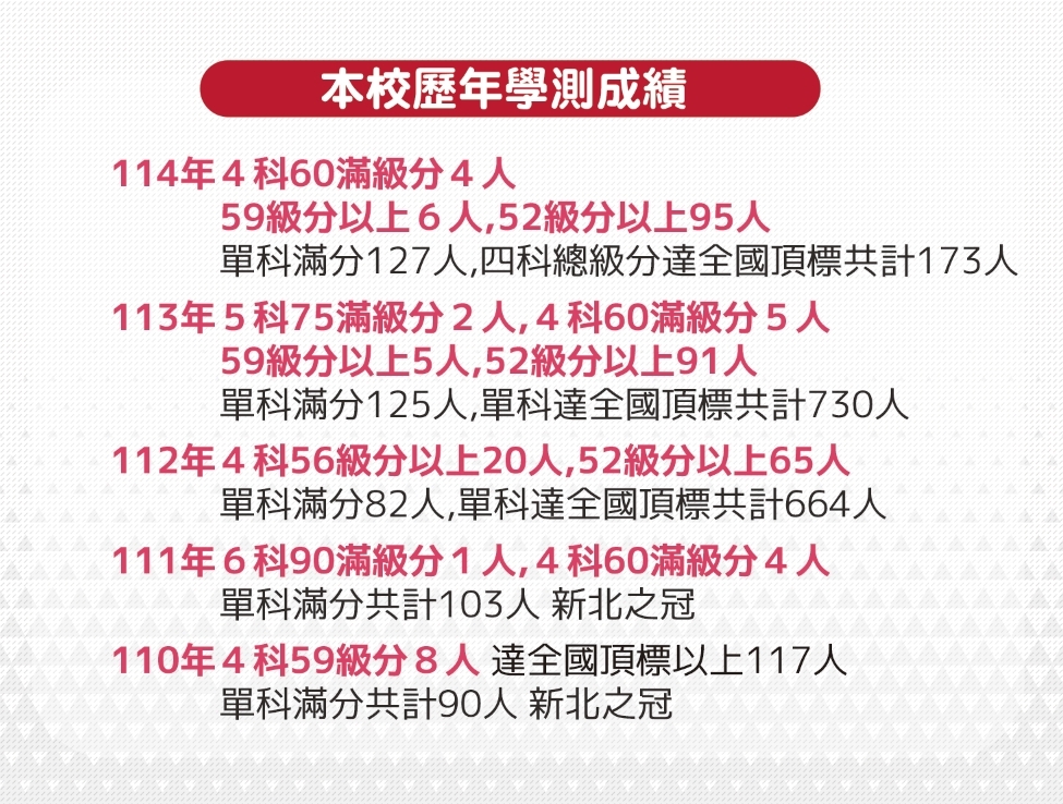 南山升學捷報:南山114學測成績冠新北!再創佳績:60滿級分 4人、59級分6人、52級分以上95人、單科滿分127人、四科總級分達全國頂標 173人